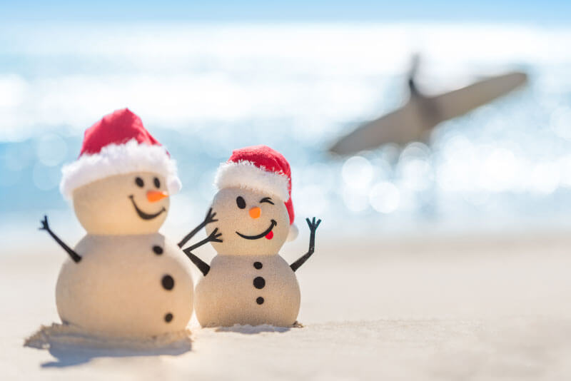 By the end of December in Australia, it is hot and sunny. Santa is out surfing at a white-sand beach. Aussies prefer to barbecue outside rather than roast things in the oven. Barbecued prawns are popular menu items, as is pavlova, that crispy meringue topped with fresh berries and cream.
