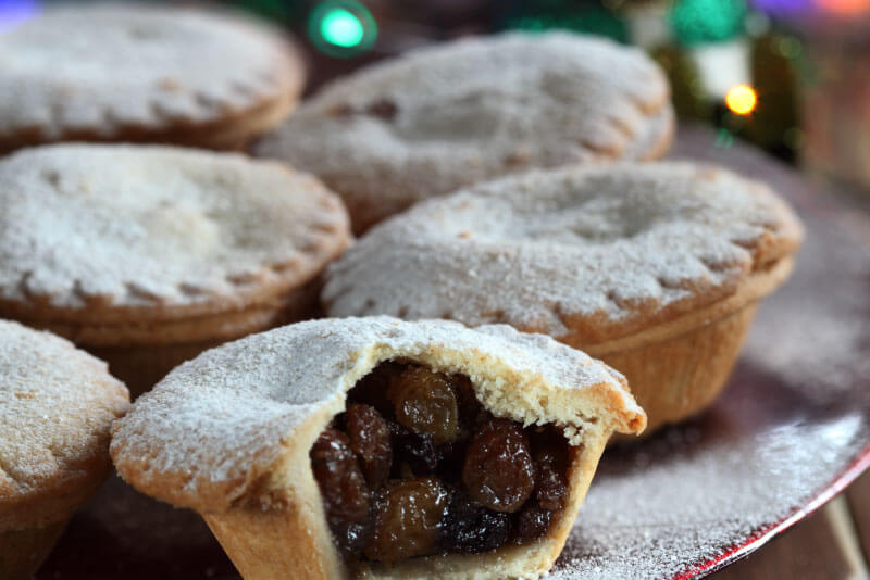 In England mince pies take center stage during the holidays. They date back to the 1300s when crusading knights brought home nutmeg, cloves, and cinnamon. Superstition suggests that if each family member makes a wish while giving the mixture a stir in a clockwise direction, joy will spread among the family. For good health, one must eat one mince pie each day of the Twelve Days of Christmas.