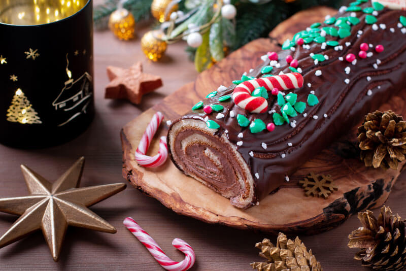 The Bûche de Noël is the French version of a Yule Log cake. The story goes that the first bûche came from either a Saint-Germain-des-Prés or Lyon pastry shop. The cake resembles the Feast of Yule large log of wood which families burn from Christmas Eve until New Year’s as an offering to the gods to ensure good harvests for the coming year.