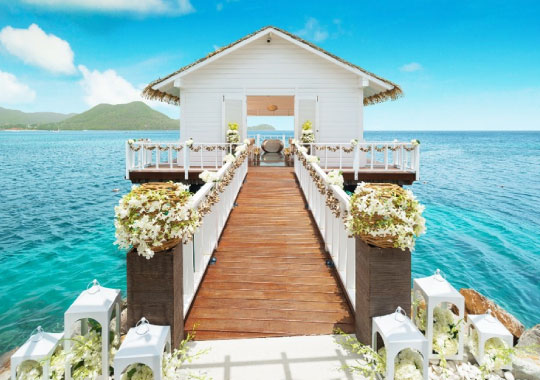 Sandals Grande St. Lucian is home to the Caribbean’s first-ever over-the-water wedding chapel featuring glass floor aisles, wow-worthy views, open-air ambiance, and a charming, simple design in which to exchange vows.